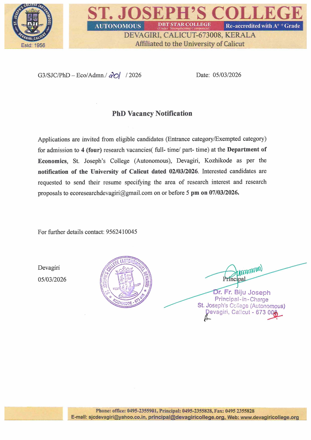 Ph.D Vacancy Notification - English