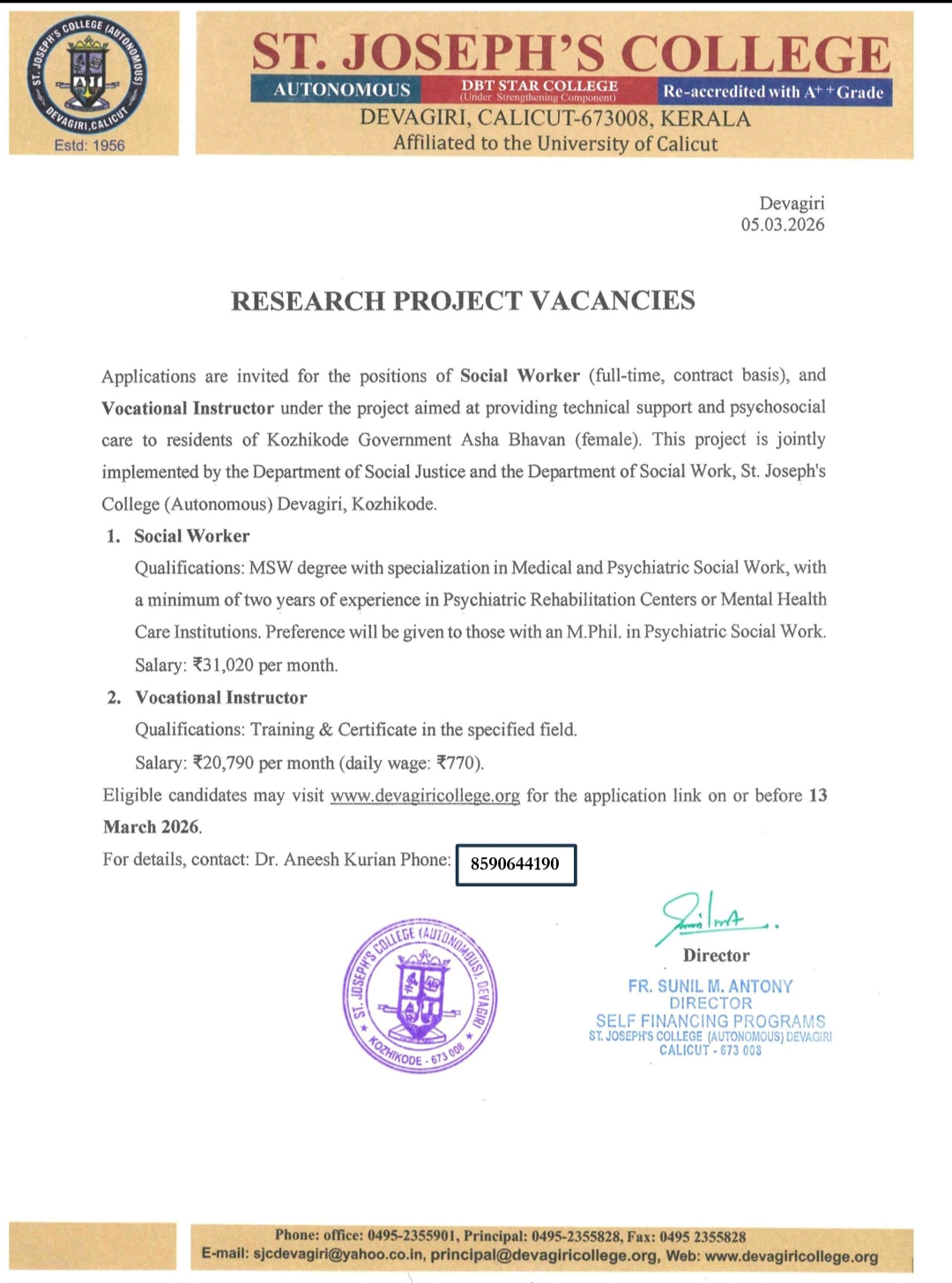 RESEARCH PROJECT VACANCIES - SOCIAL WORKER